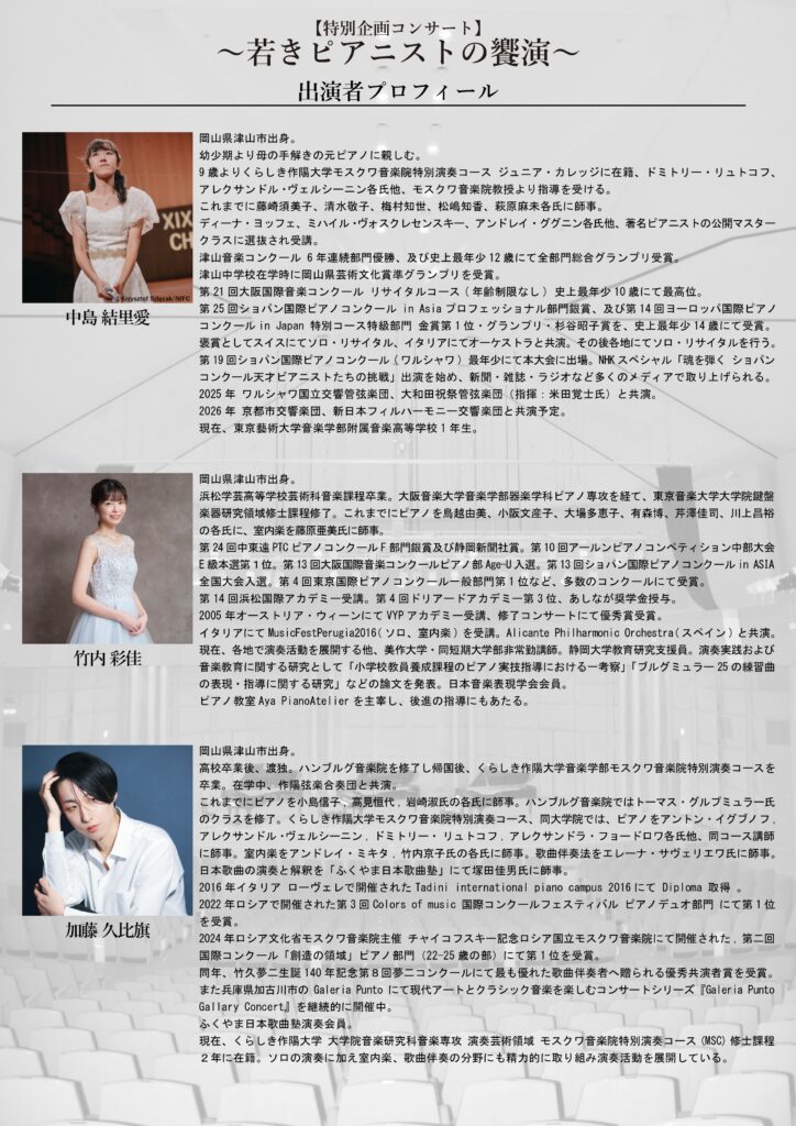 ※出演順は、申込順とは関係なく、年齢・曲目などを考慮のうえ、主催者側で決定いたします。