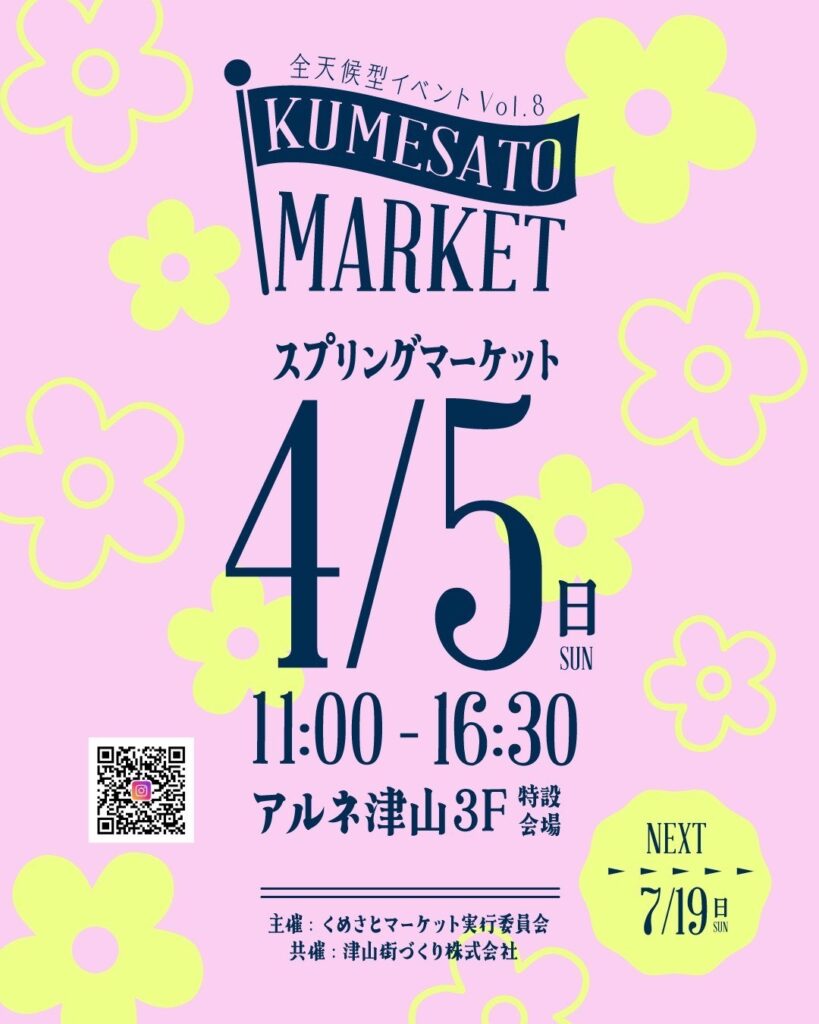 めさとマーケットvol.8 『くめさとマーケット』𝙸𝙽アルネ津山全天候型マルシェイベントスプリングマーケットハンドメイド雑貨/フード&ドリンク/占い/リラクゼーション/フリマ/音楽 […]